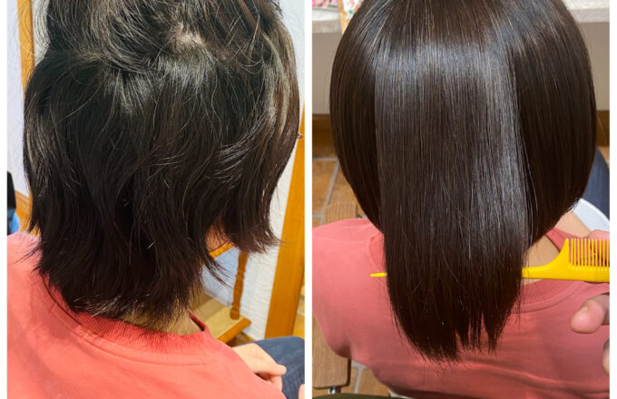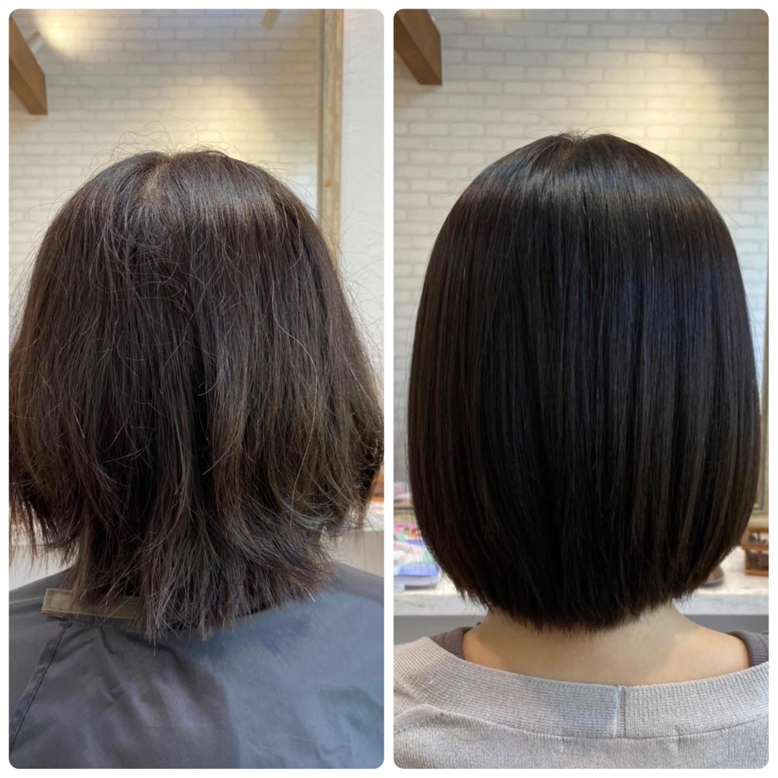 「ココに来てから髪が、どんどん綺麗になって来てる‼嬉しい‼ありがとう‼」「パーマをあてても痛みが少なくて、ブローがしやすくなつたわ」「旦那が髪綺麗になってるって褒めてくれた。」など、沢山の方に【嬉しい言葉】をいただいてます。